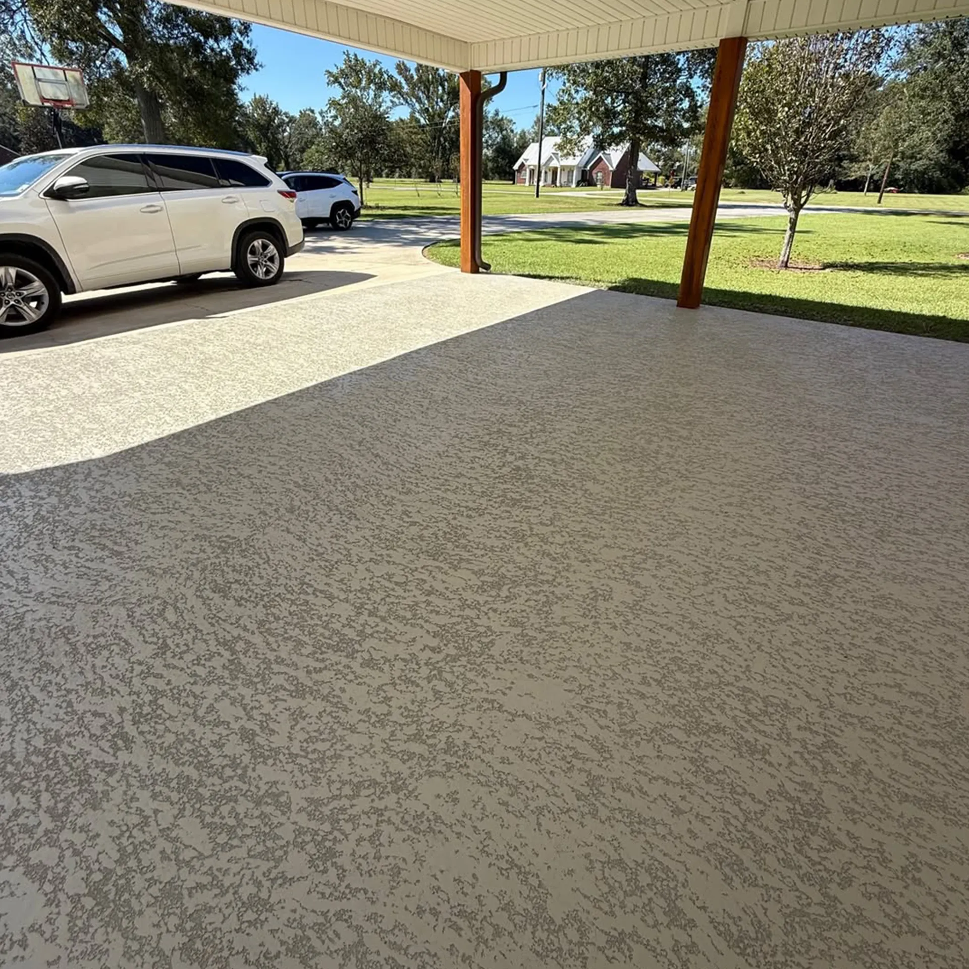 Our polymer-modified overlays are actually stronger (PSI) than standard concrete, providing a durable wear surface that resists salt and abrasion.